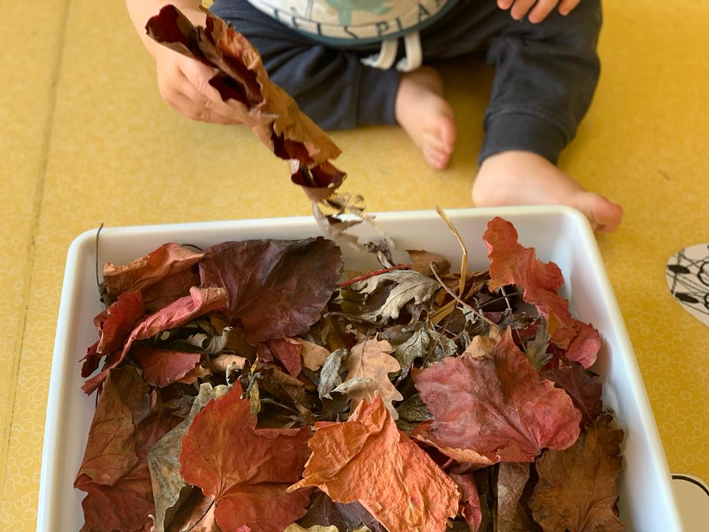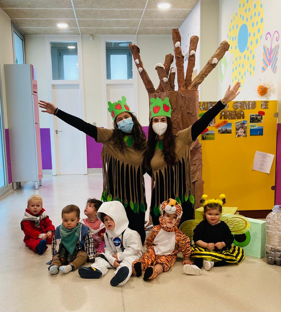 El Otoño ya ha cambiado el color de nuestro entorno, y por ello las familias de nuestra escuela han podido recoger diferentes hojas caídas de los árboles y nuestras educadoras han preparado una gran instalación con unas originales máscaras, que a nuestros peques les ha encantado.