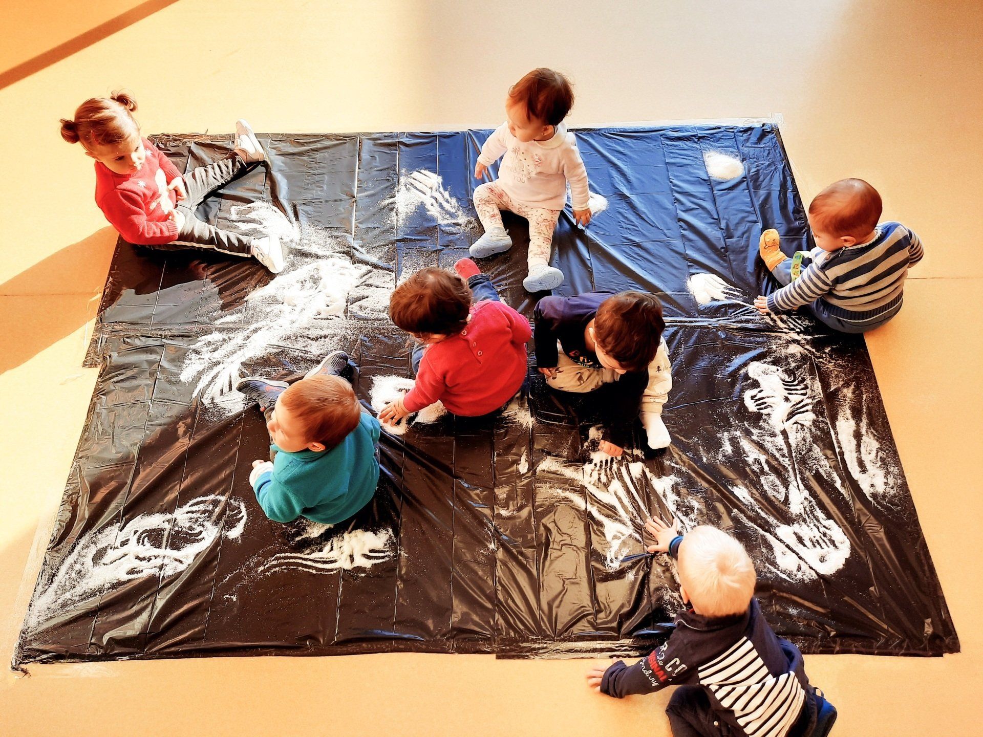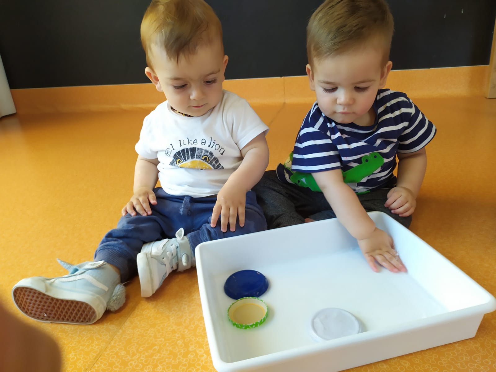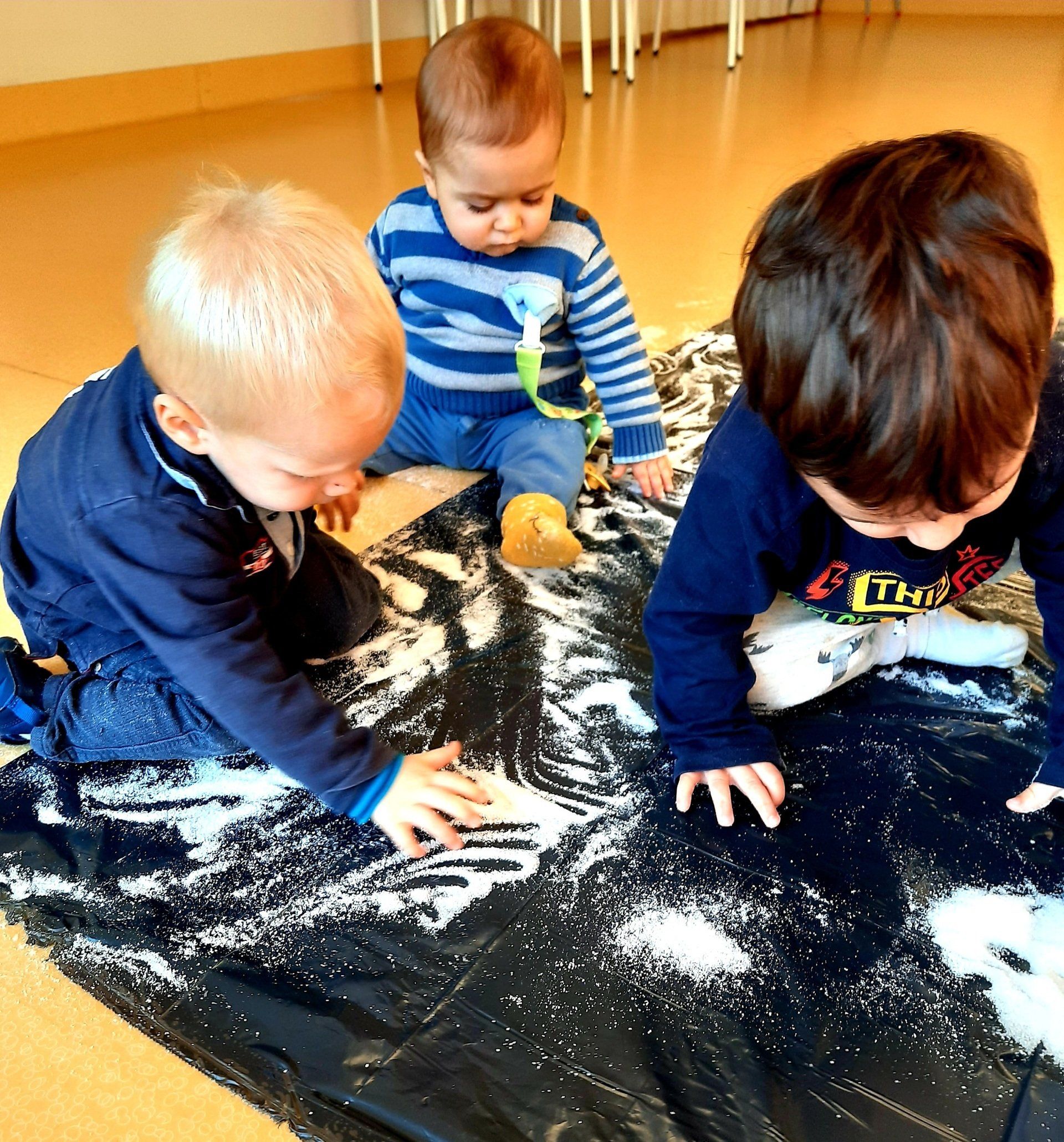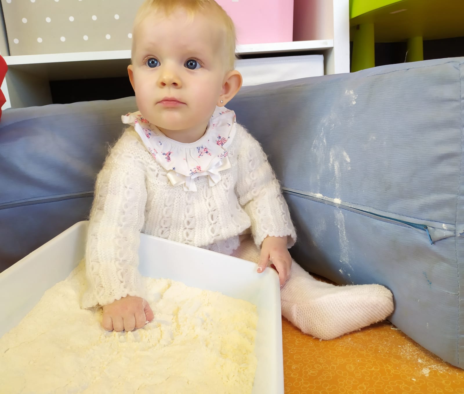 La pasada semana, nuestros peques han disfrutado de una sesión de experimentación con bandejas de harina. Os dejamos alguna foto para que veáis como han disfrutado.