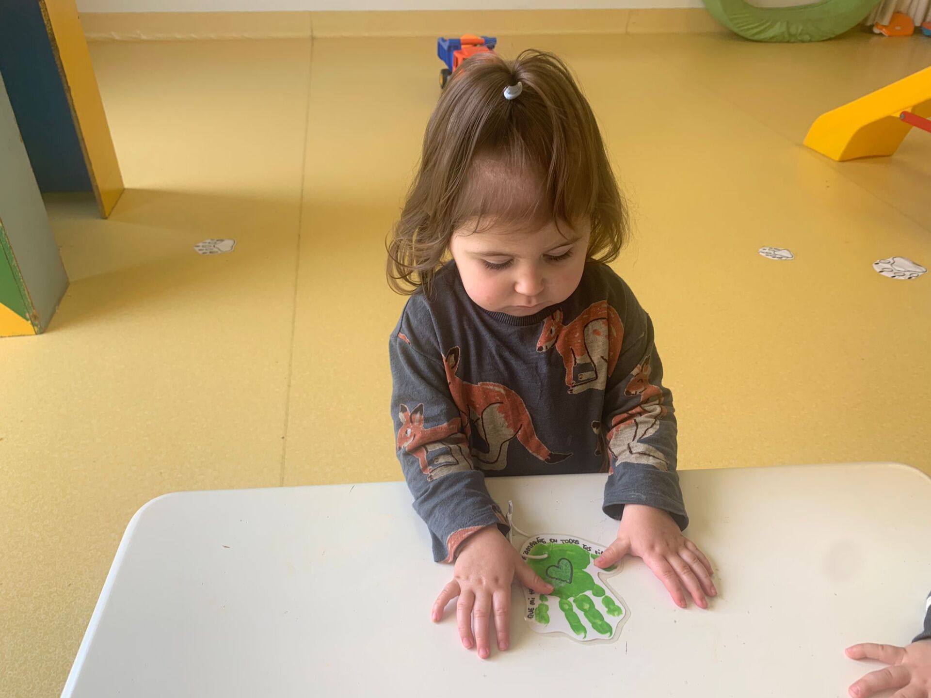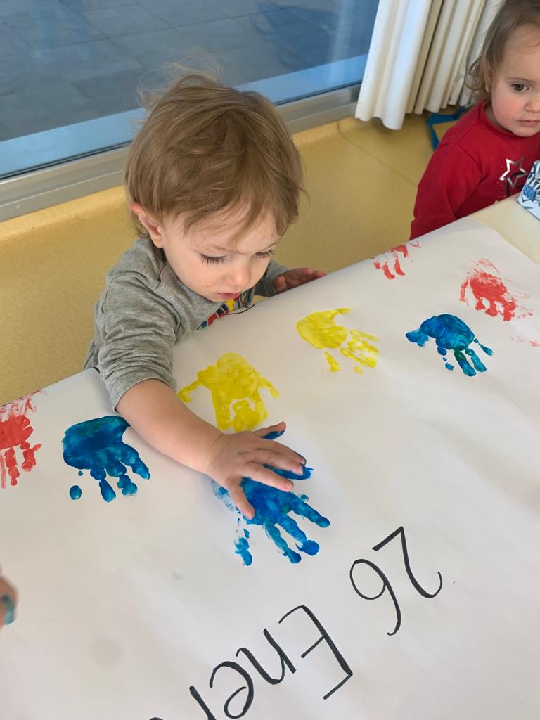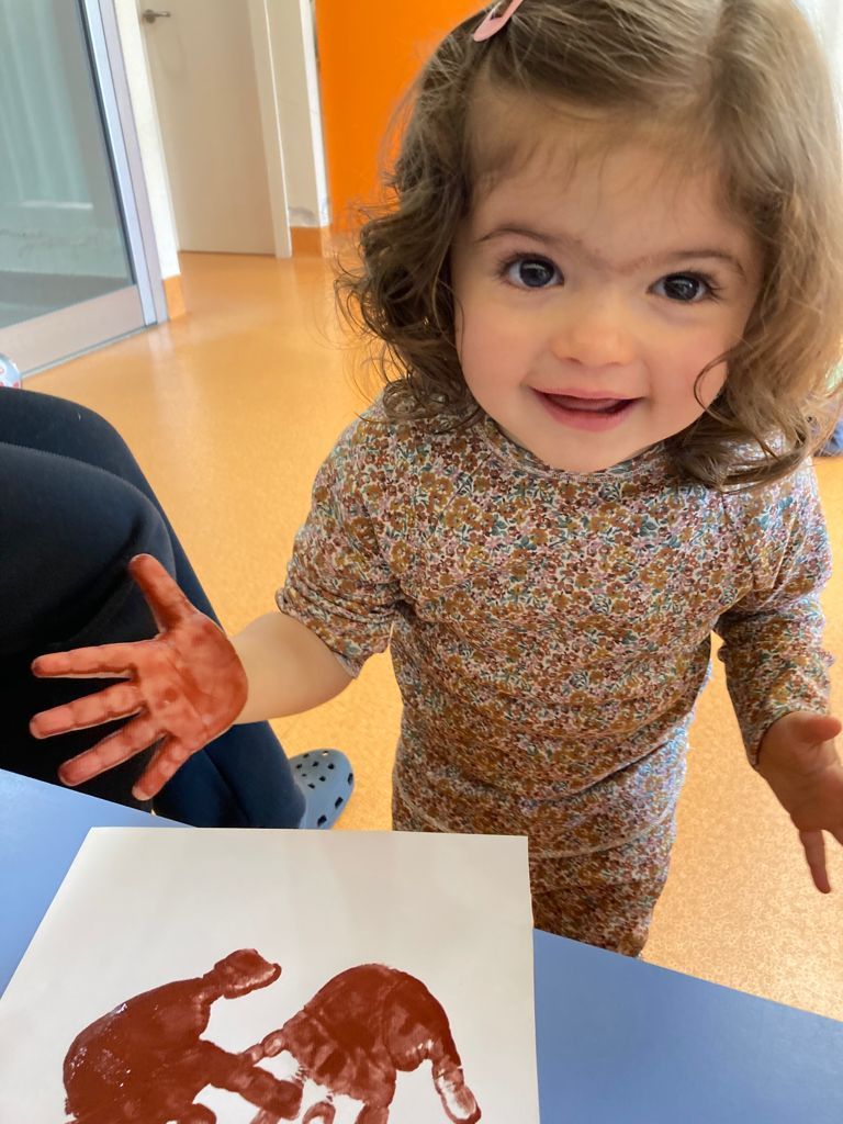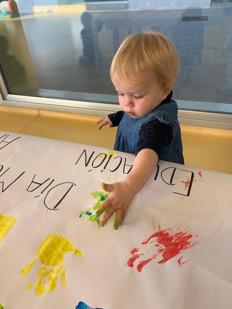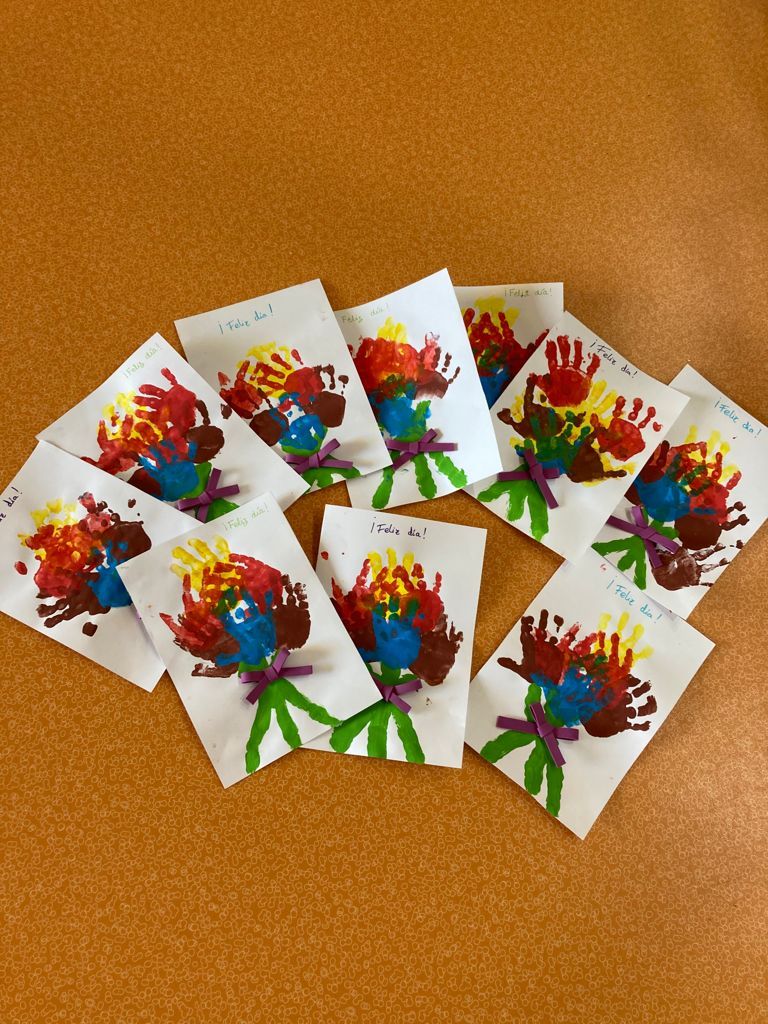 Como bien se merecen, lo hemos celebrado con ell@s mediante un mural realizado con las manos de tod@s los peques.