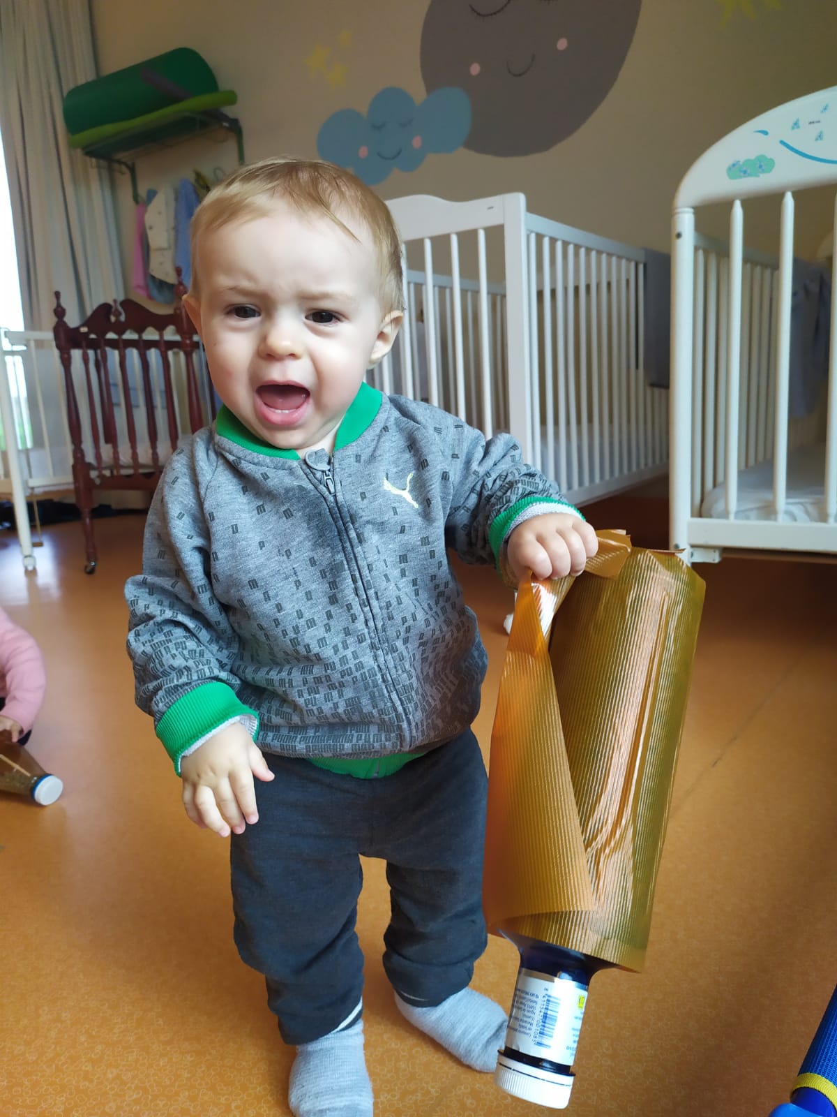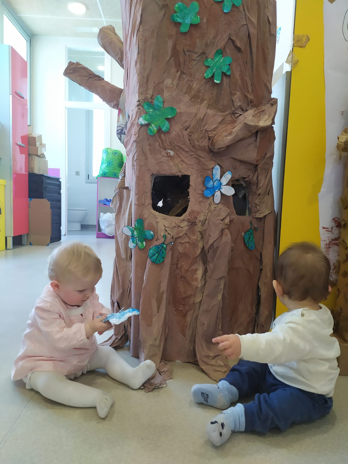 Esta semana hemos realizado una actividad con botellas recicladas, dándoles así un segundo uso educativo y lúdico a nuestros residuos. Las hemos envuelto con papel marrón y corcho simulando el tronco de los árboles y hemos podido experimentar sus propiedades como su forma, su color, su textura... además de desarrollar la motricidad fina al intentar romper y desenvolver el papel.