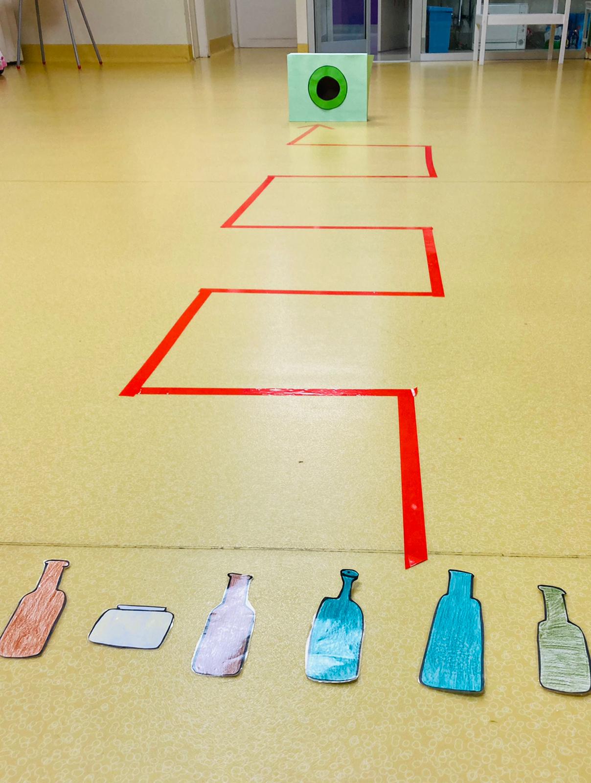 Seguimos trabajando nuestro programa de Ecoescuelas a través de actividades. Hoy, mediante un circuito, hemos simulado el reciclaje del vidrio.