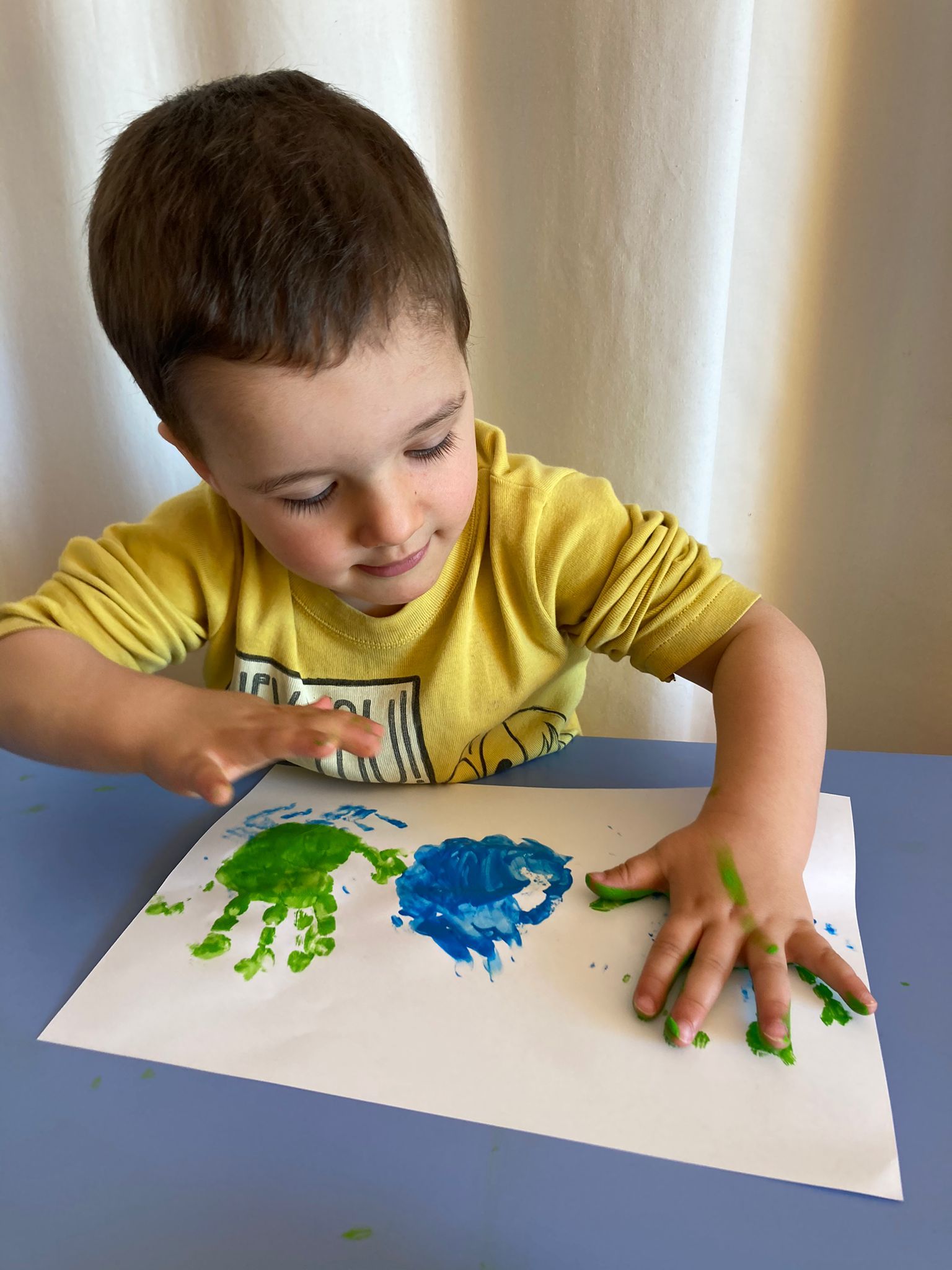 Con esta actividad, además de disfrutar pintándonos y manchándonos, podemos experimentar y explorar texturas y colores, a la vez que desarrollamos nuestra creatividad y motricidad fina.