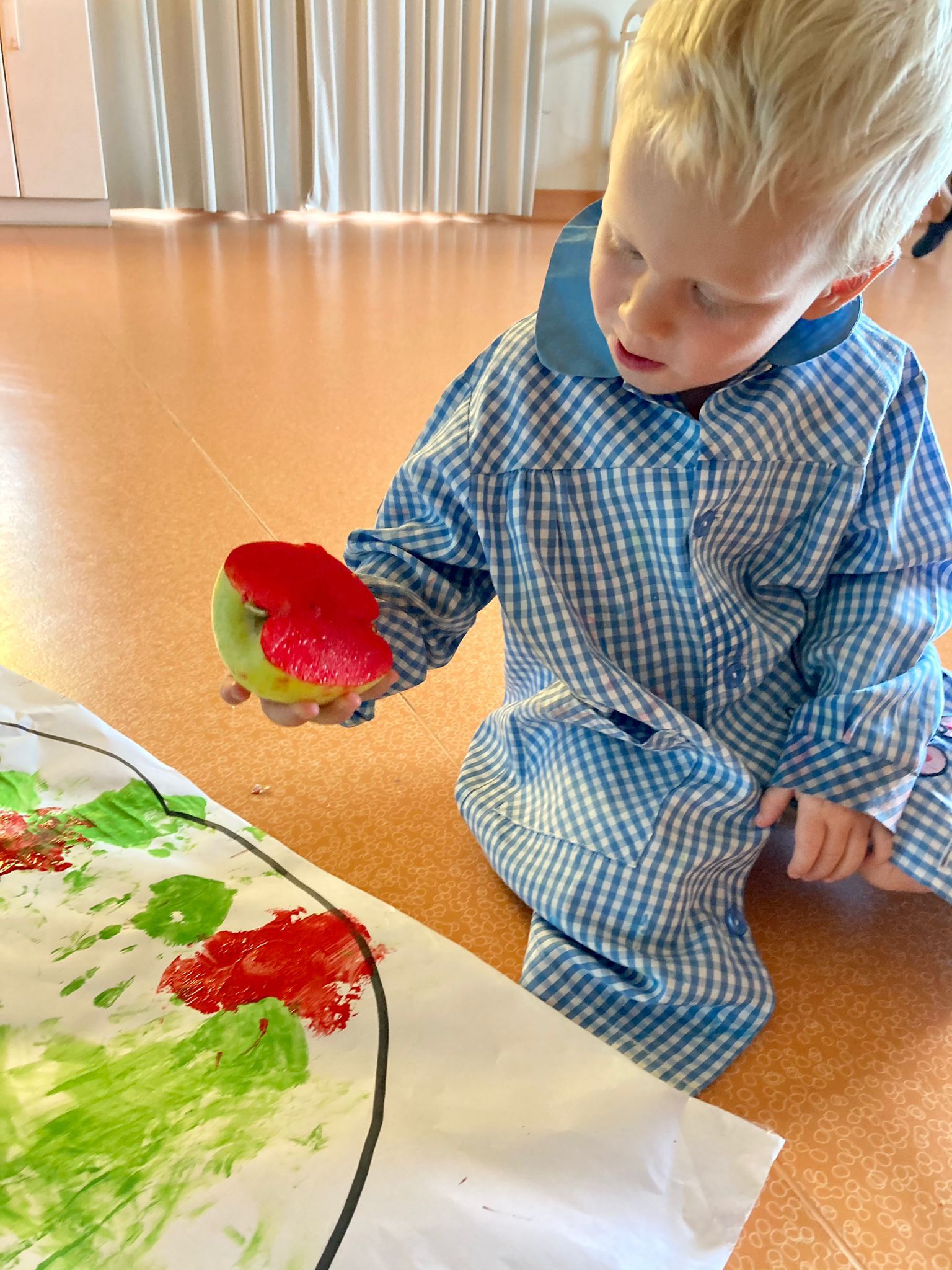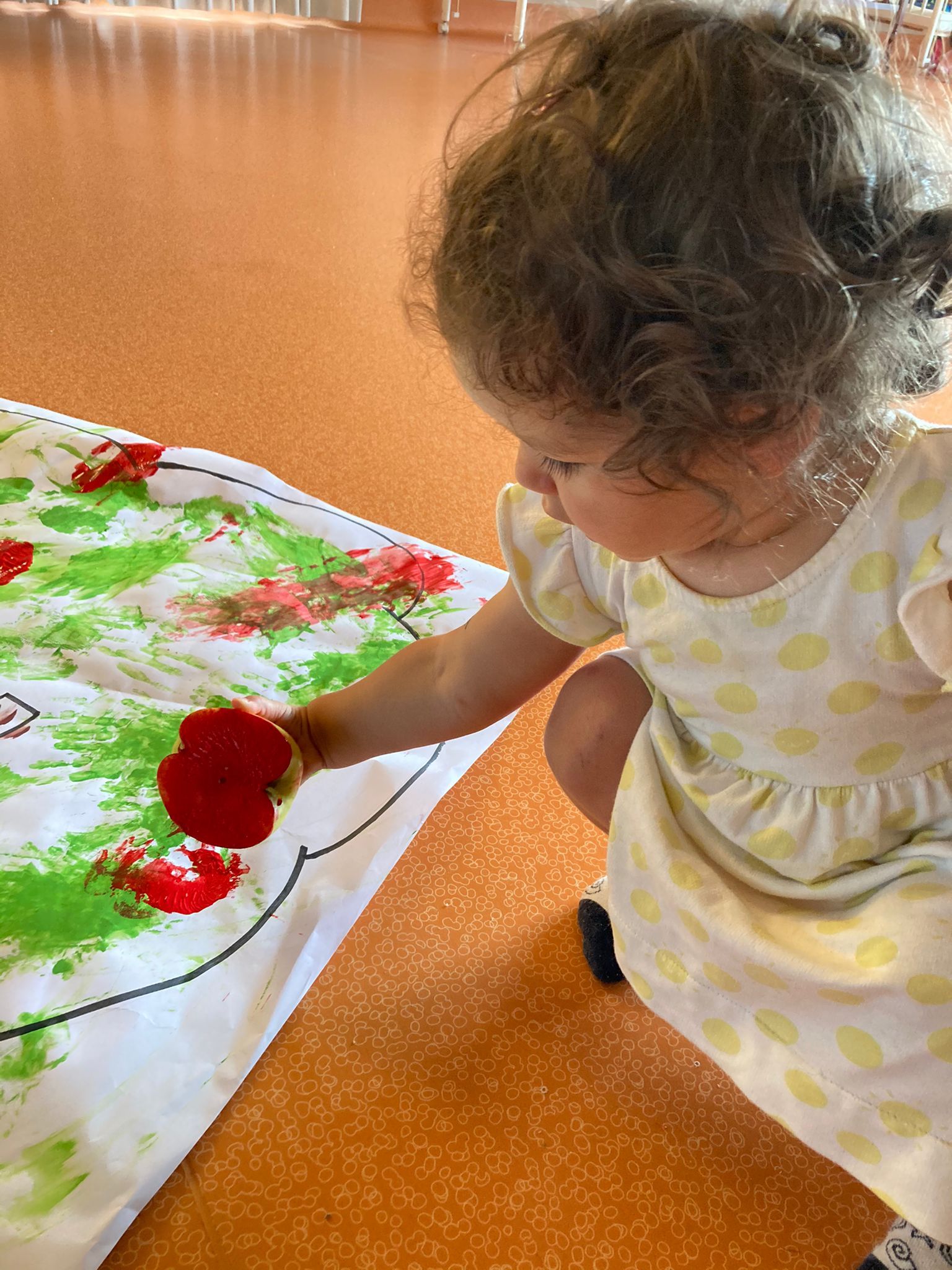 Os mostramos alguna foto de la actividad realizada ayer. Esta vez hemos utilizado nuestros dedos para pintar unas manzanas en un árbol muy especial para nuestros más pequeños. A través de la pintura de dedos no solo dejamos que vuele su imaginación si no que tiene muchos otros beneficios como el favorecer su desarrollo sensorial y su coordinación visomotora entre otros.