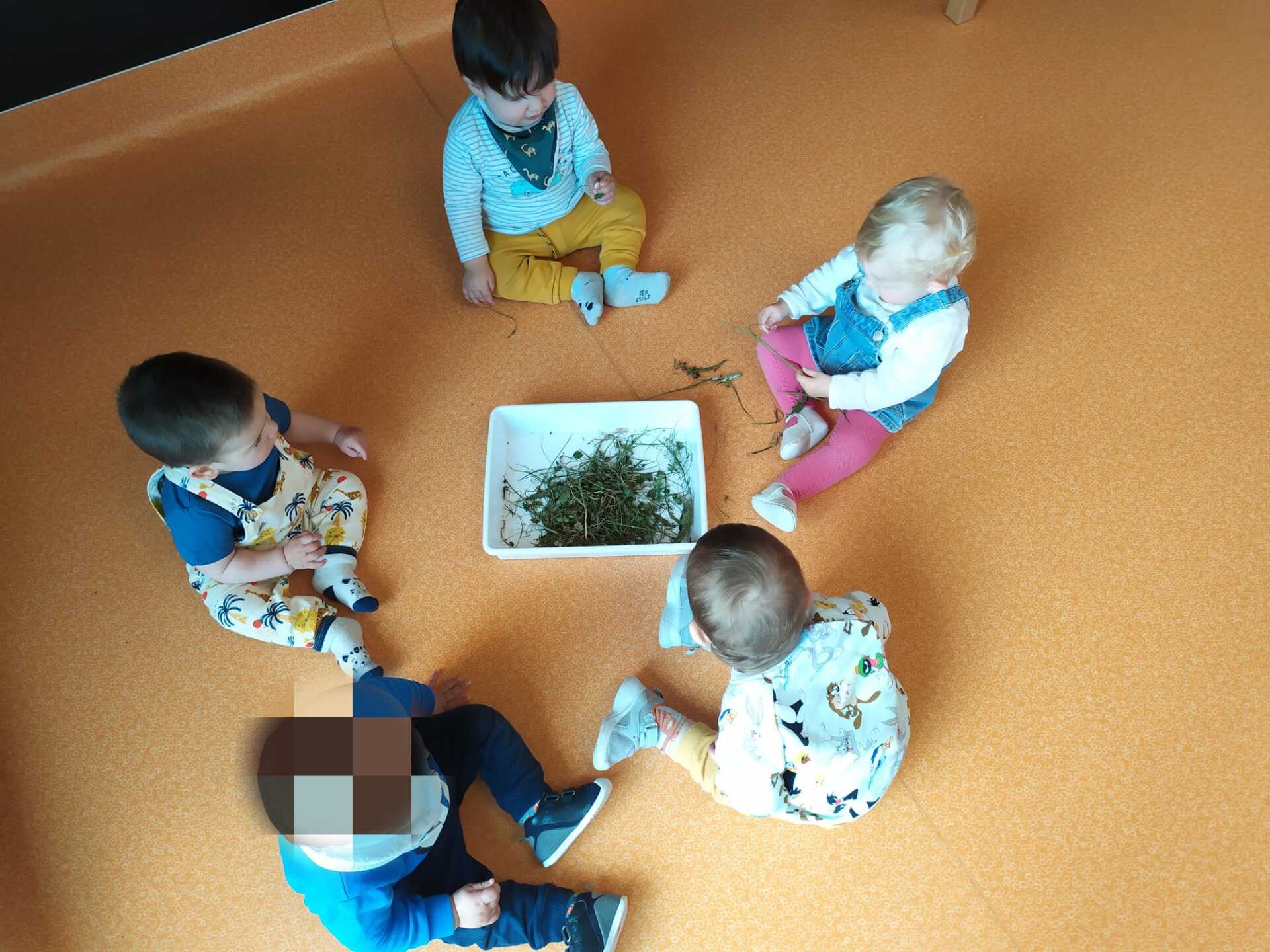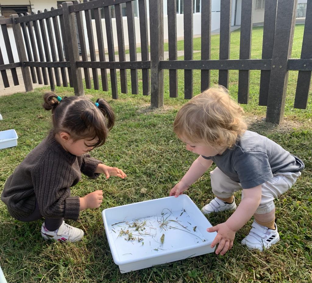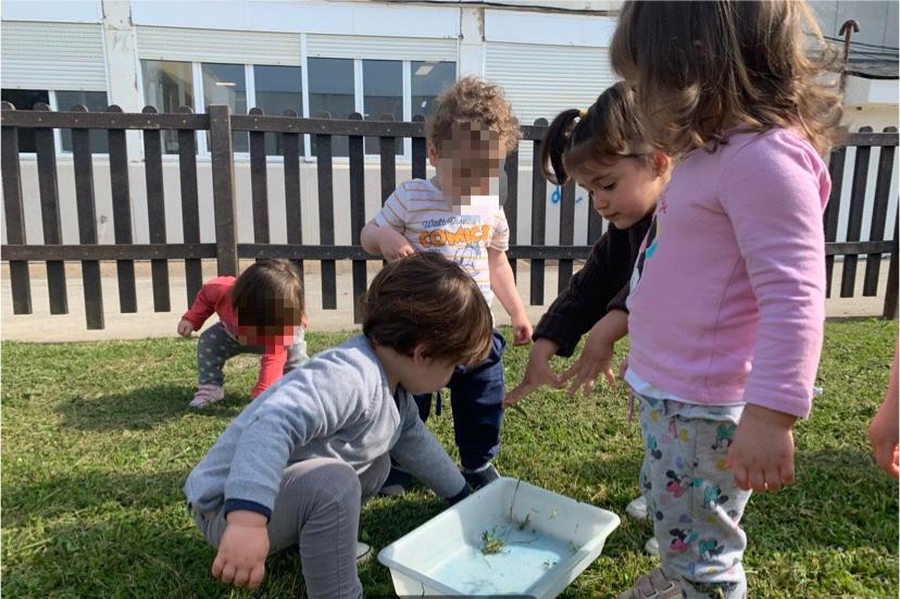 En esta ocasión os mostramos una actividad sensorial, la cual ha consistido en recoger en el jardín hierba y jugar con ella en bandejas de experimentación. Los niños y niñas han manipulado su textura y su olor, pudiendo trabajar tanto los sentidos como el entorno natural que nos rodea de una forma más directa y conectada con la realidad.