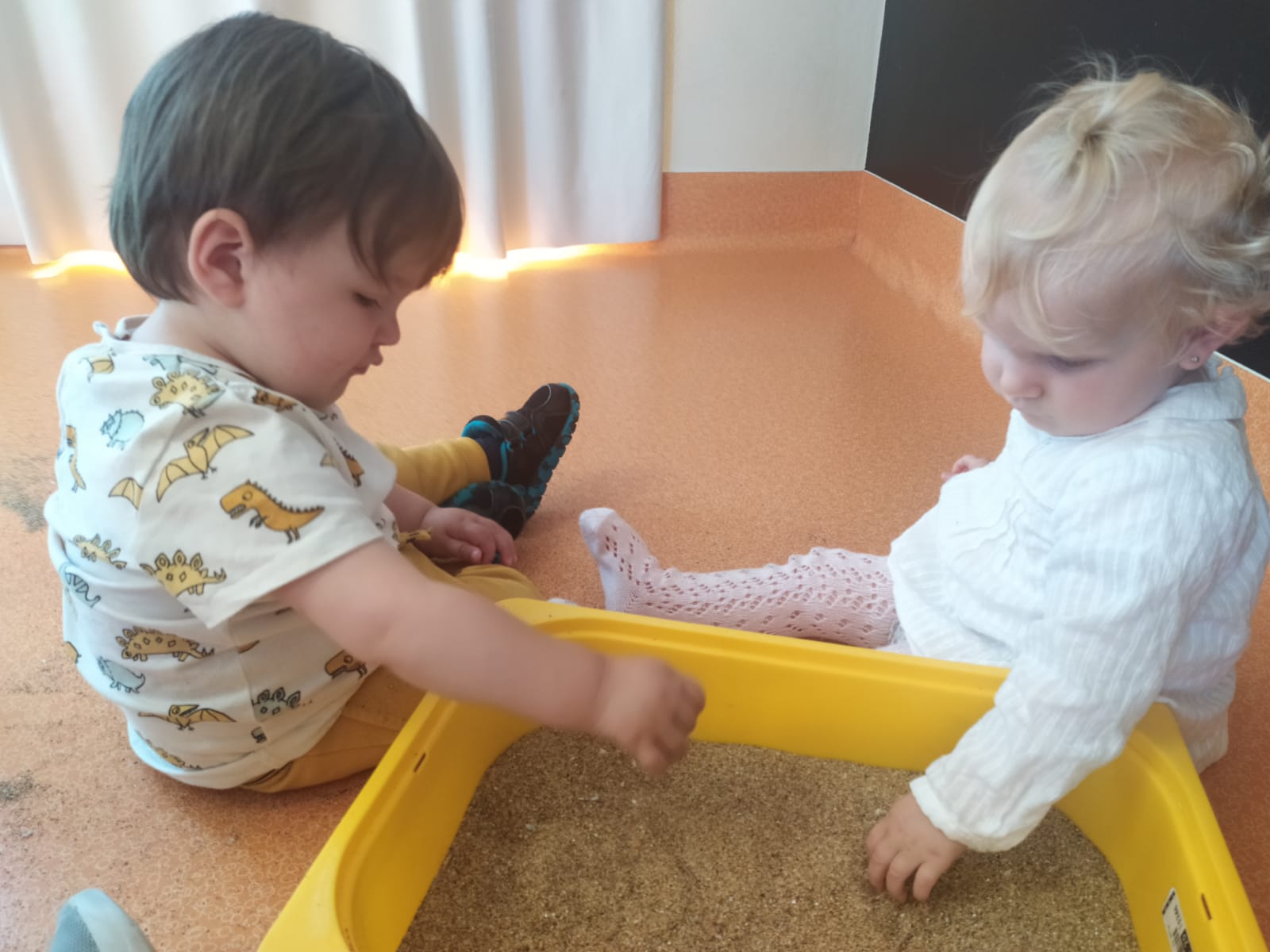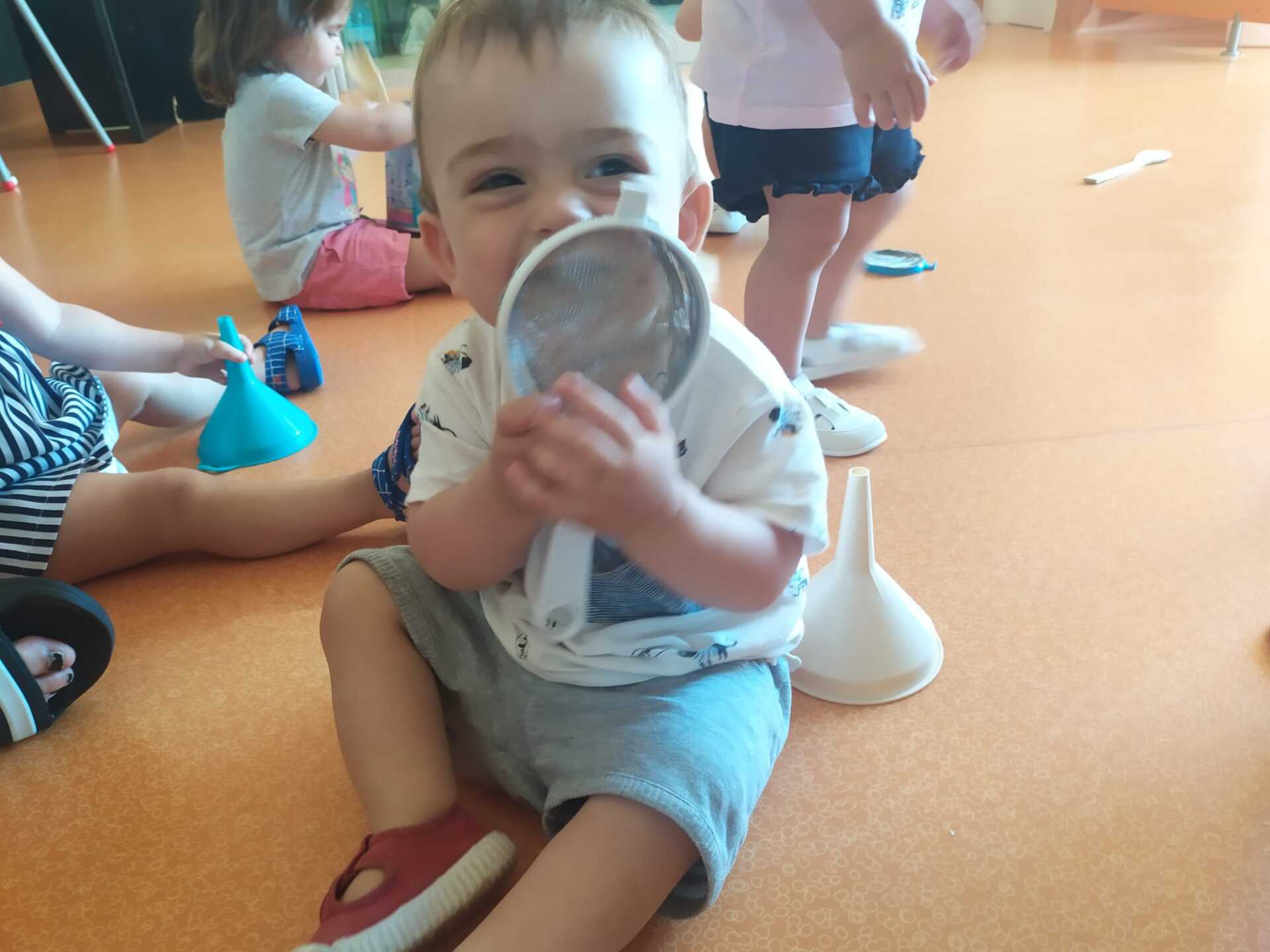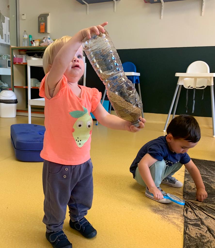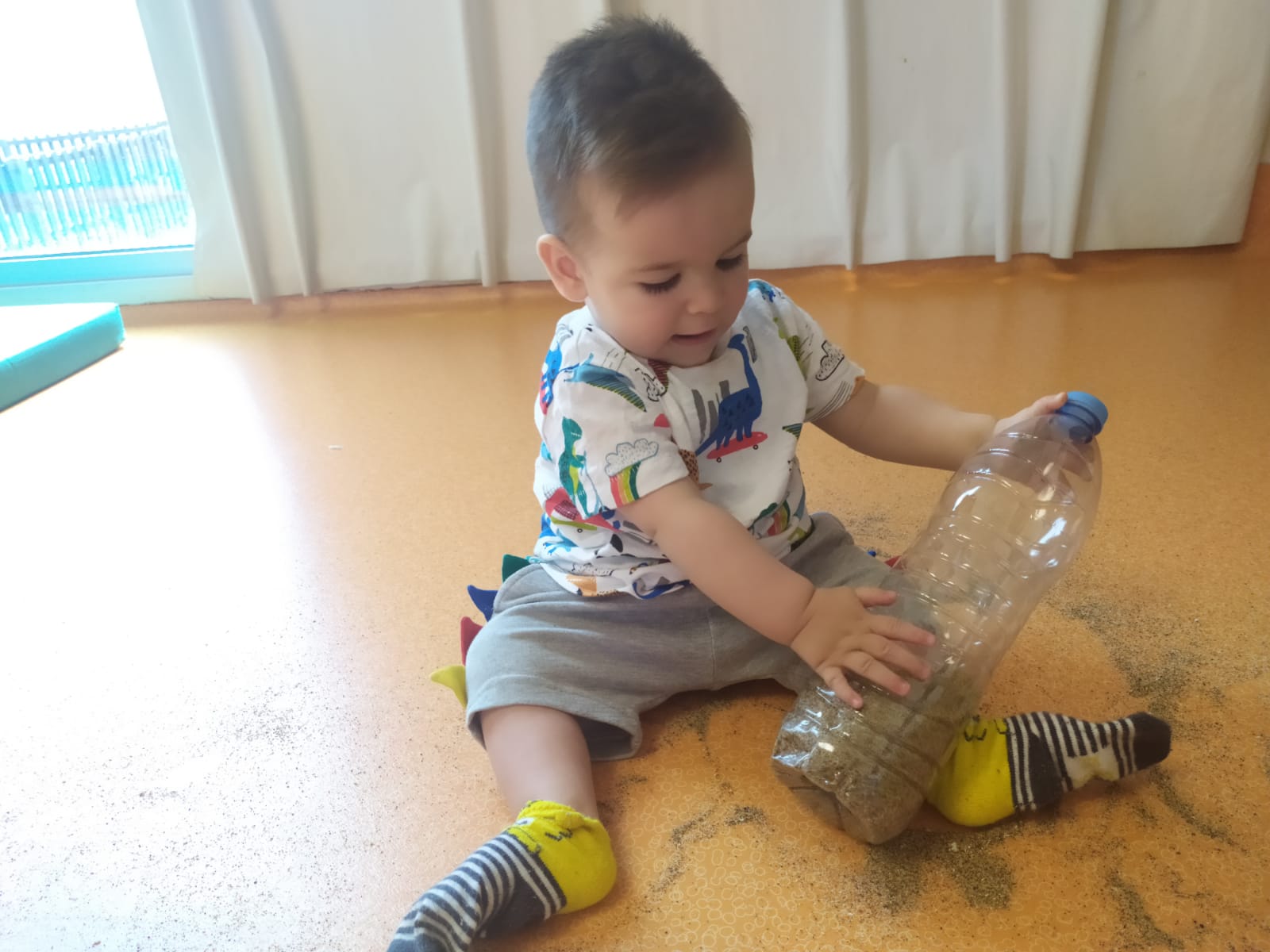Se acerca el verano y por ello nos hemos querido adelantar jugando con arena y haciendo trasvases con botellas, cajas, coladores... Hemos podido experimentar su textura y el ruido que hace dentro de las botellas, favoreciendo así sus incipientes capacidades perceptivas.