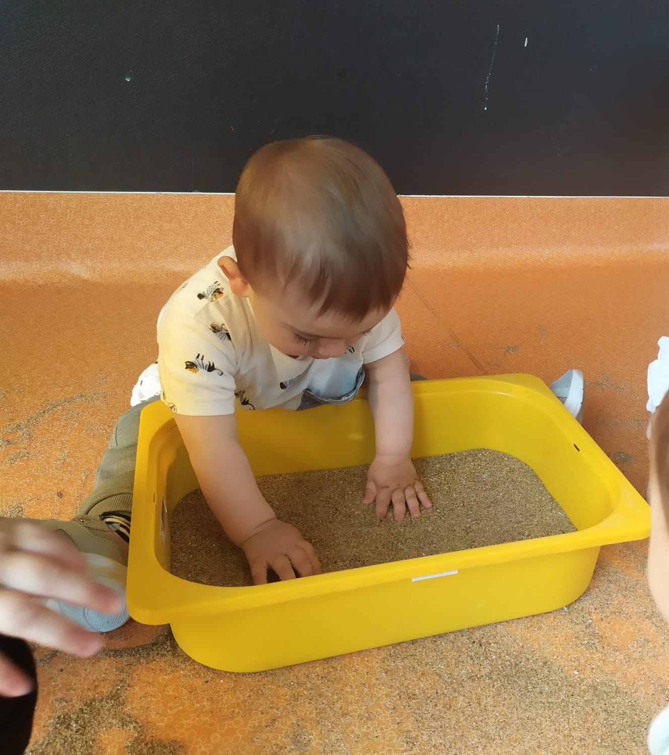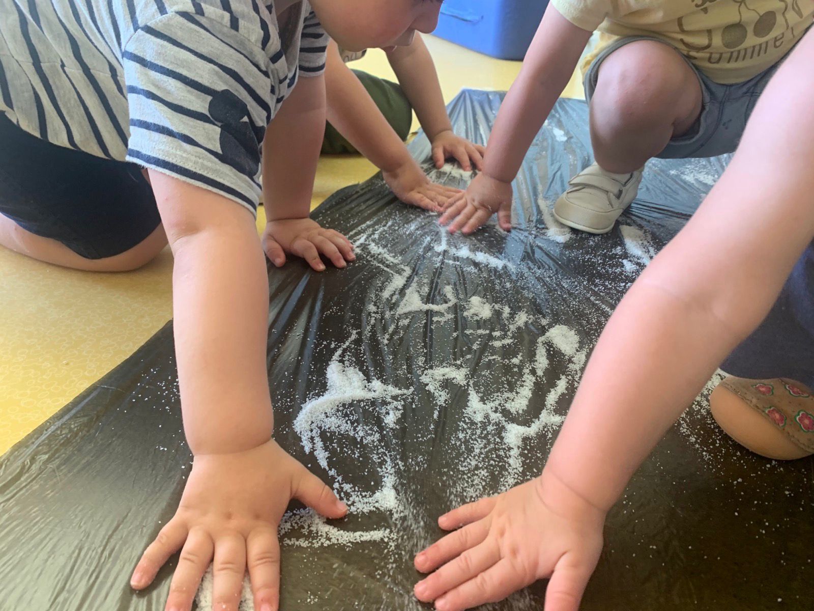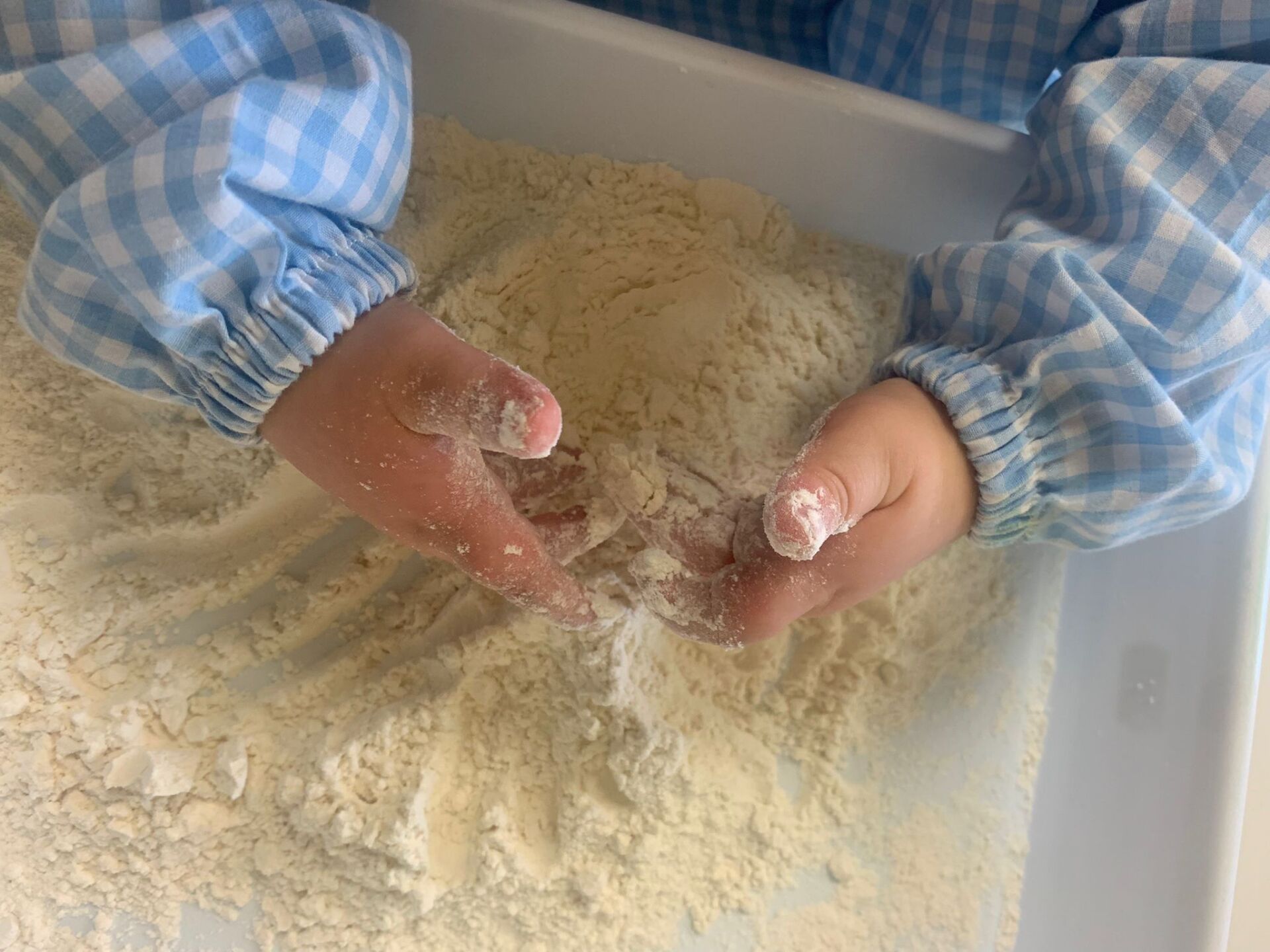 La pasada semana, nuestros peques han disfrutado de una sesión de experimentación con bandejas de harina. Os dejamos alguna foto para que veáis como han disfrutado.