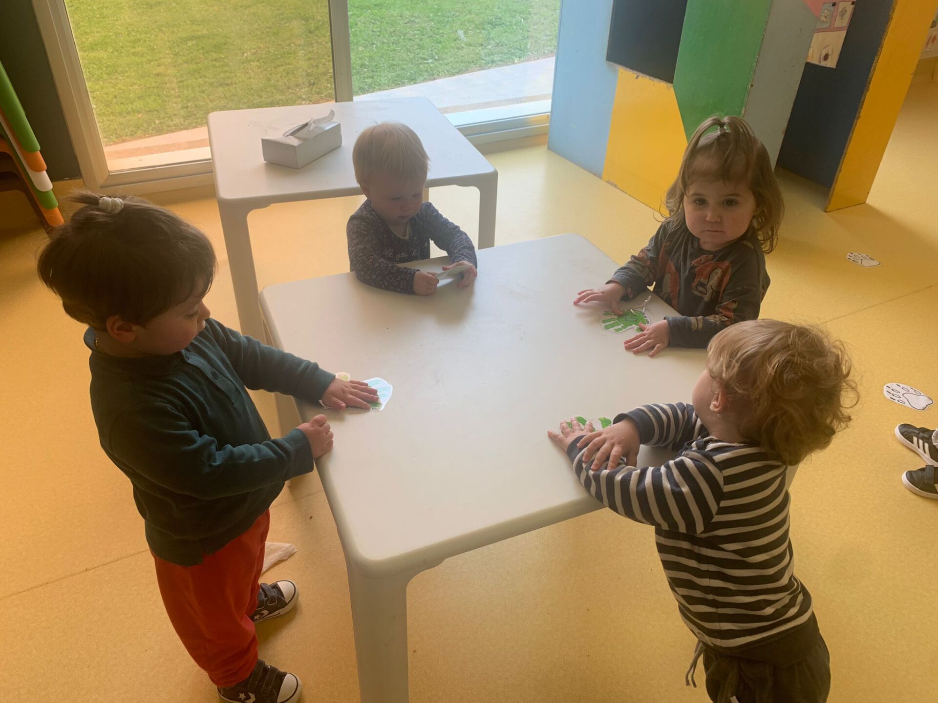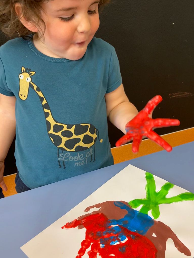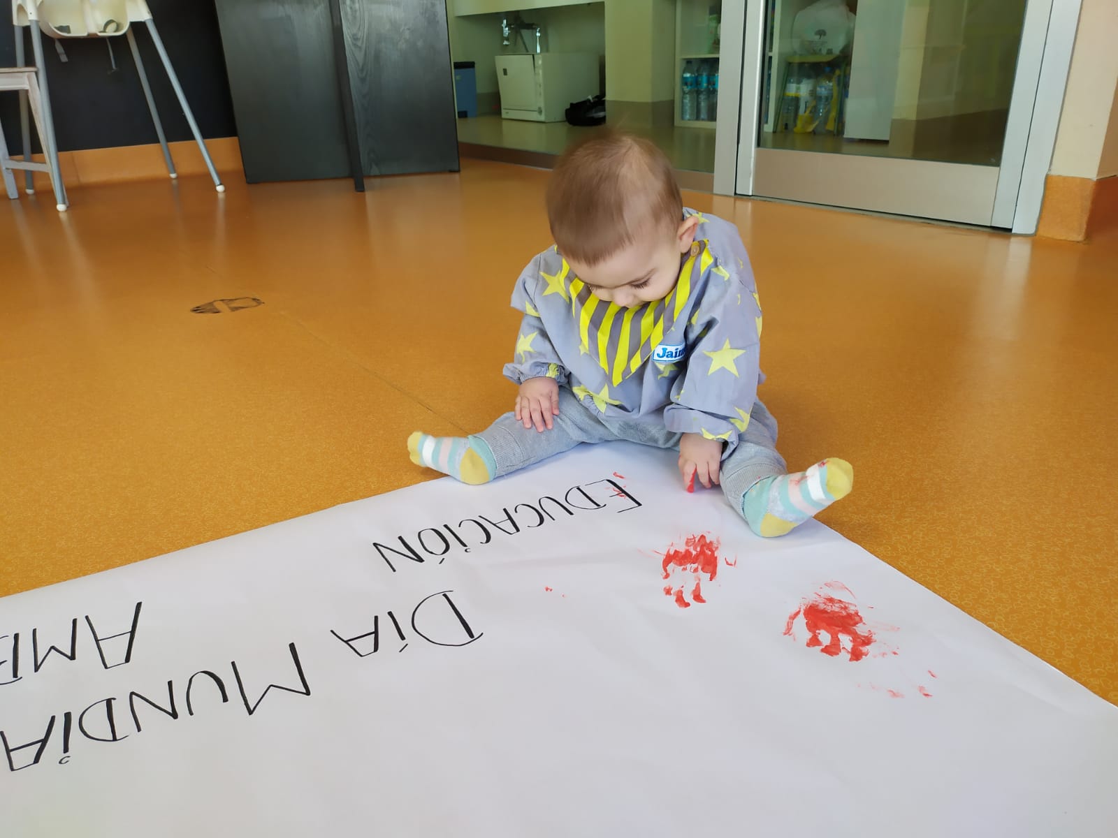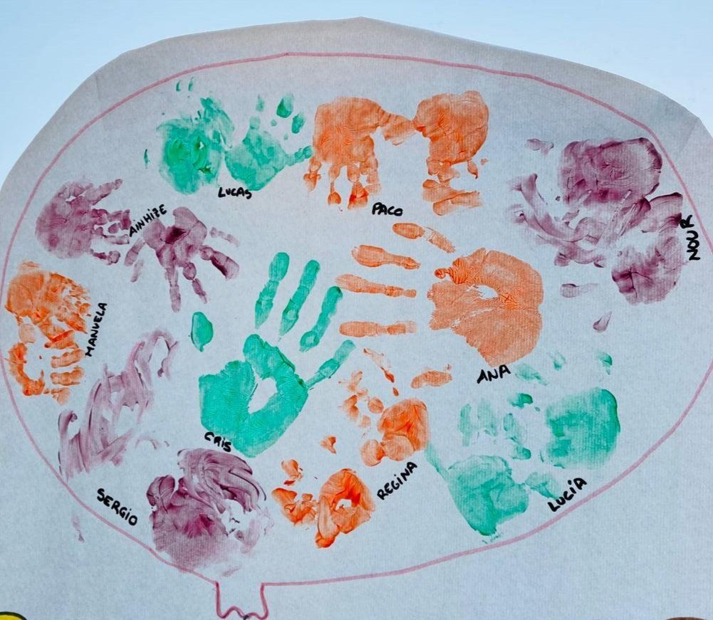 Como bien se merecen, lo hemos celebrado con ell@s mediante un mural realizado con las manos de tod@s los peques.