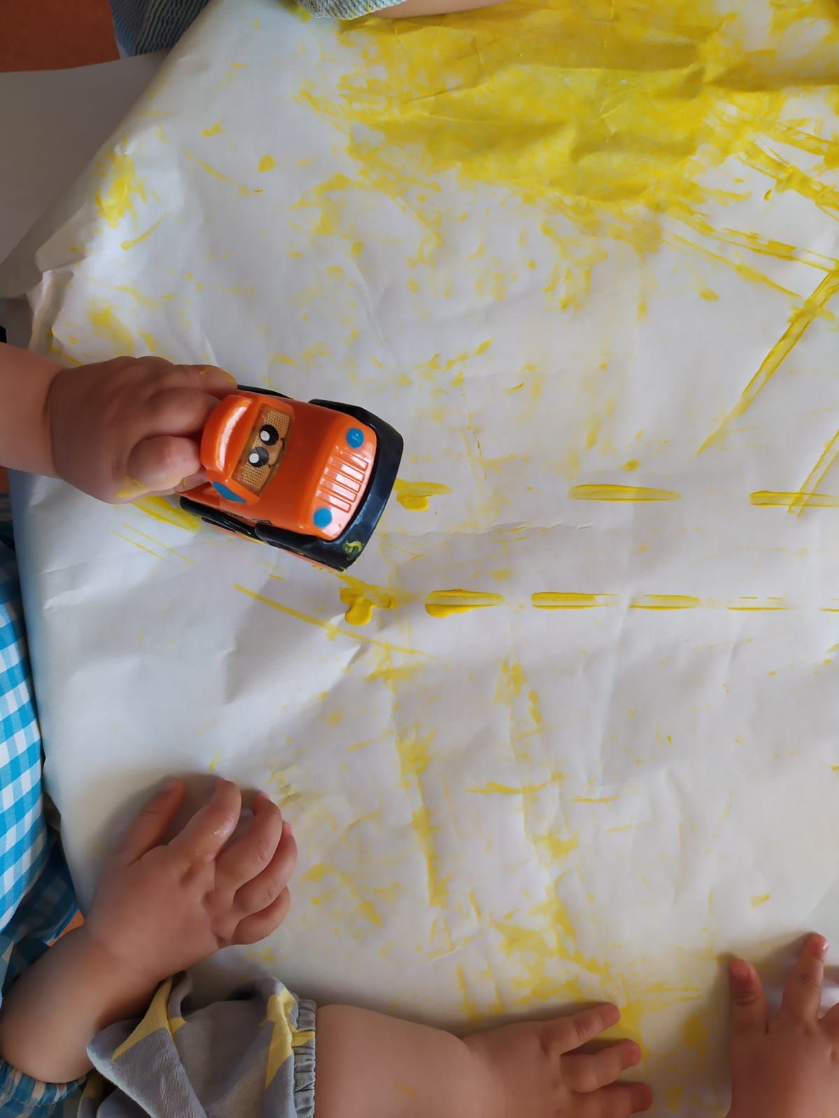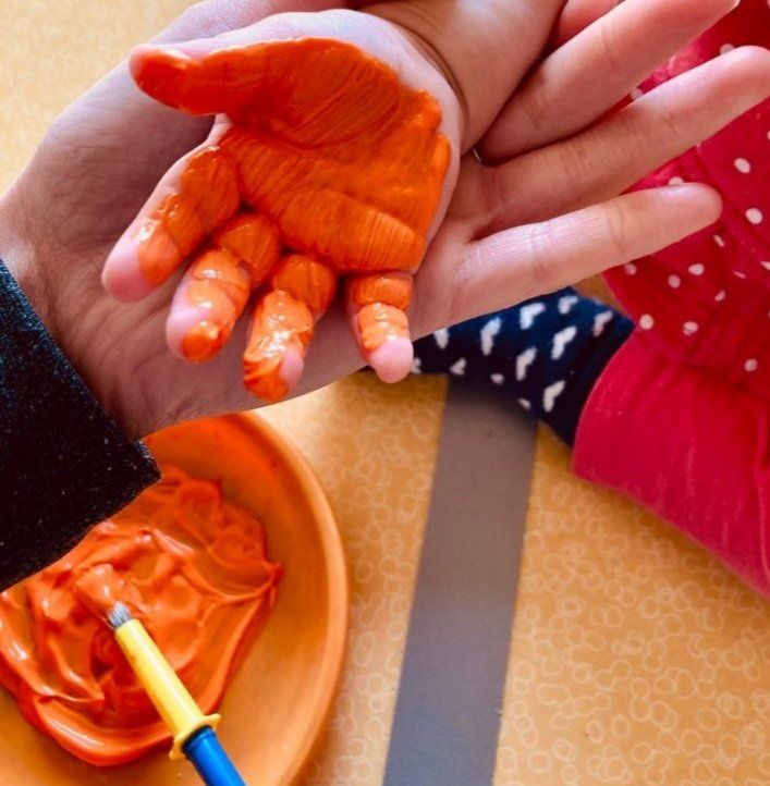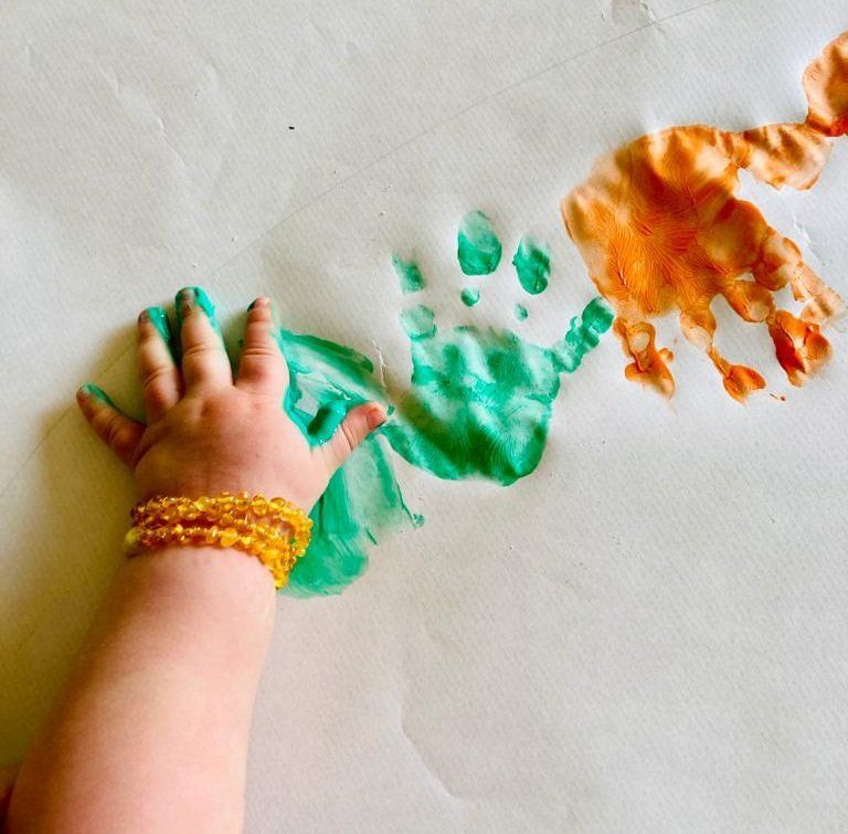 Con esta actividad, además de disfrutar pintándonos y manchándonos, podemos experimentar y explorar texturas y colores, a la vez que desarrollamos nuestra creatividad y motricidad fina.