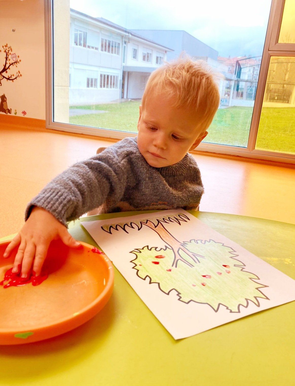 Os mostramos alguna foto de la actividad realizada ayer. Esta vez hemos utilizado nuestros dedos para pintar unas manzanas en un árbol muy especial para nuestros más pequeños. A través de la pintura de dedos no solo dejamos que vuele su imaginación si no que tiene muchos otros beneficios como el favorecer su desarrollo sensorial y su coordinación visomotora entre otros.