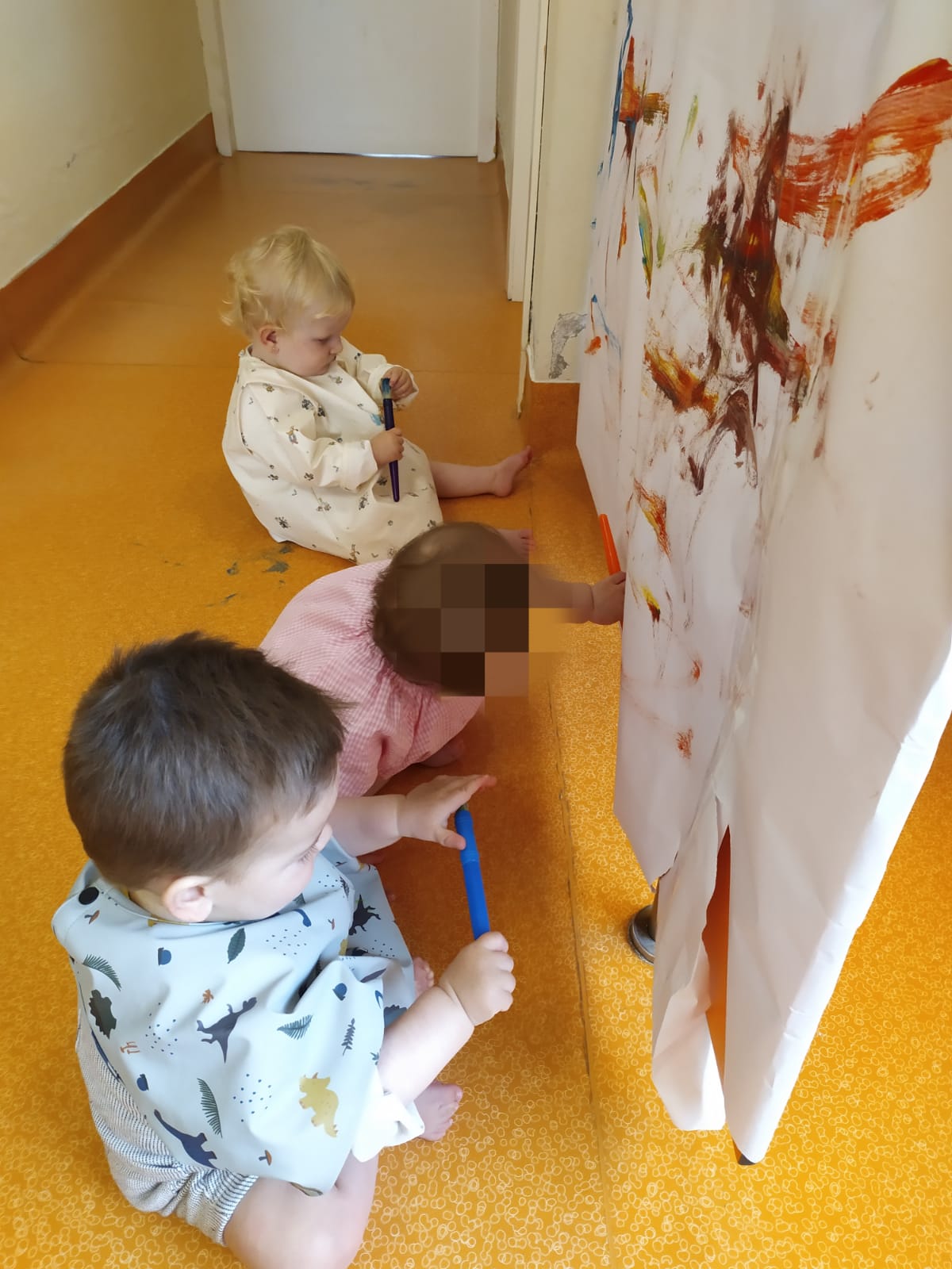 y con un pincel y pintura los pies nos hemos pintado