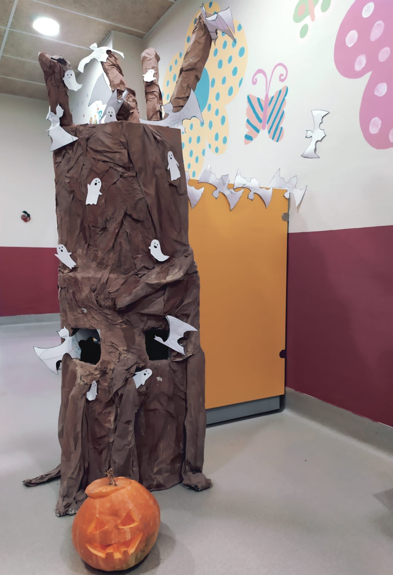 El Otoño ya ha cambiado el color de nuestro entorno, y por ello las familias de nuestra escuela han podido recoger diferentes hojas caídas de los árboles y nuestras educadoras han preparado una gran instalación con unas originales máscaras, que a nuestros peques les ha encantado.