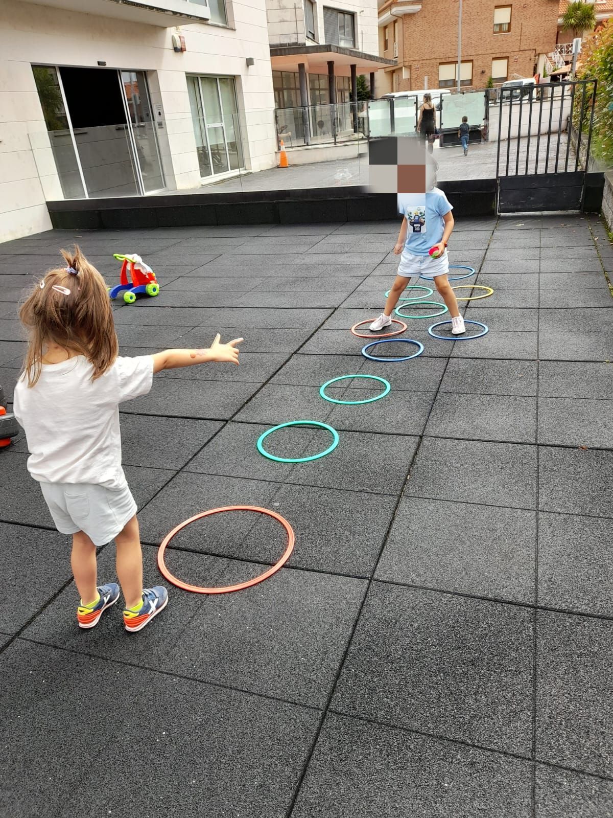 Llega el momento del patio, en el que tanto corremos, reímos y jugamos. Cuando sale el sol nos alegramos un montón, porque de este espacio disfrutamos mogollón.