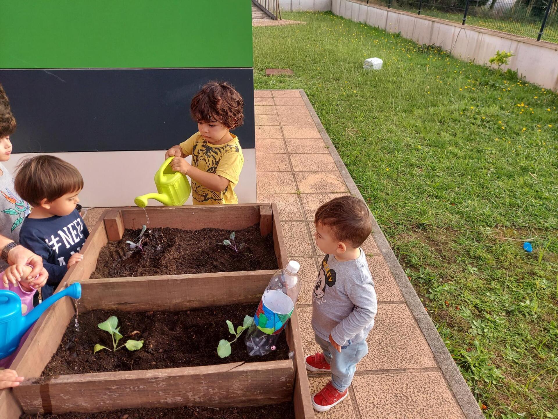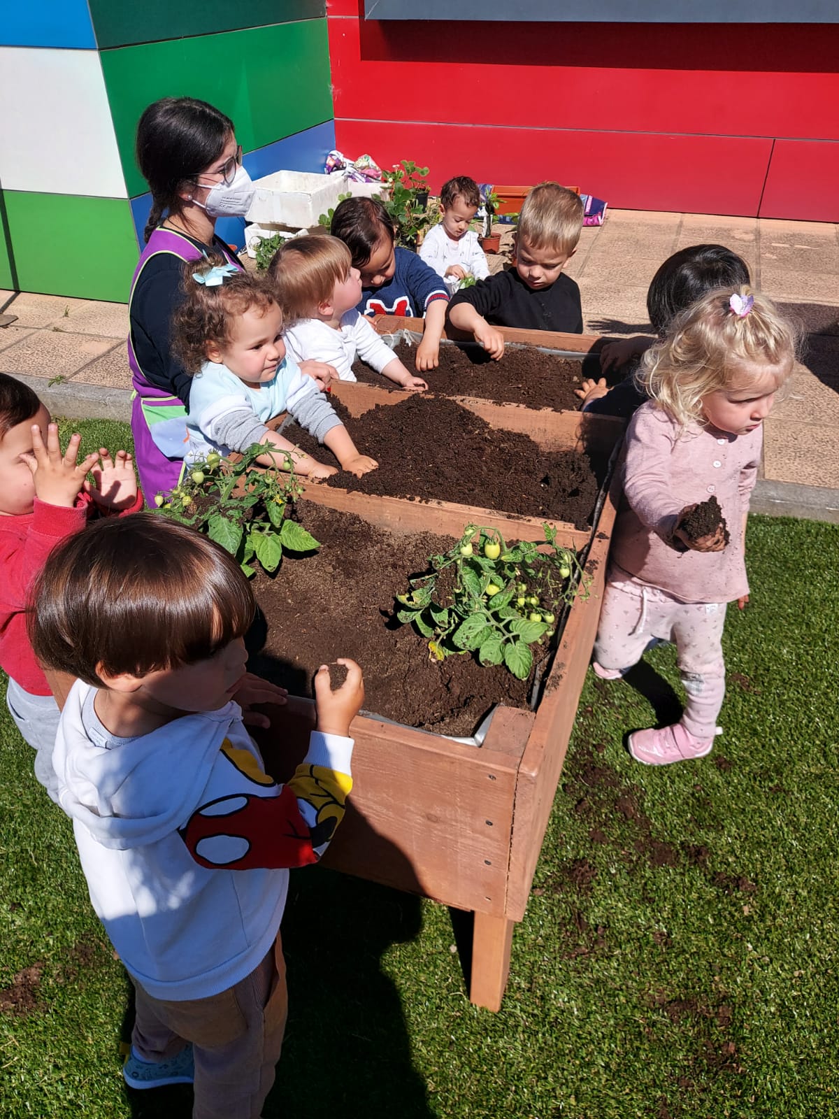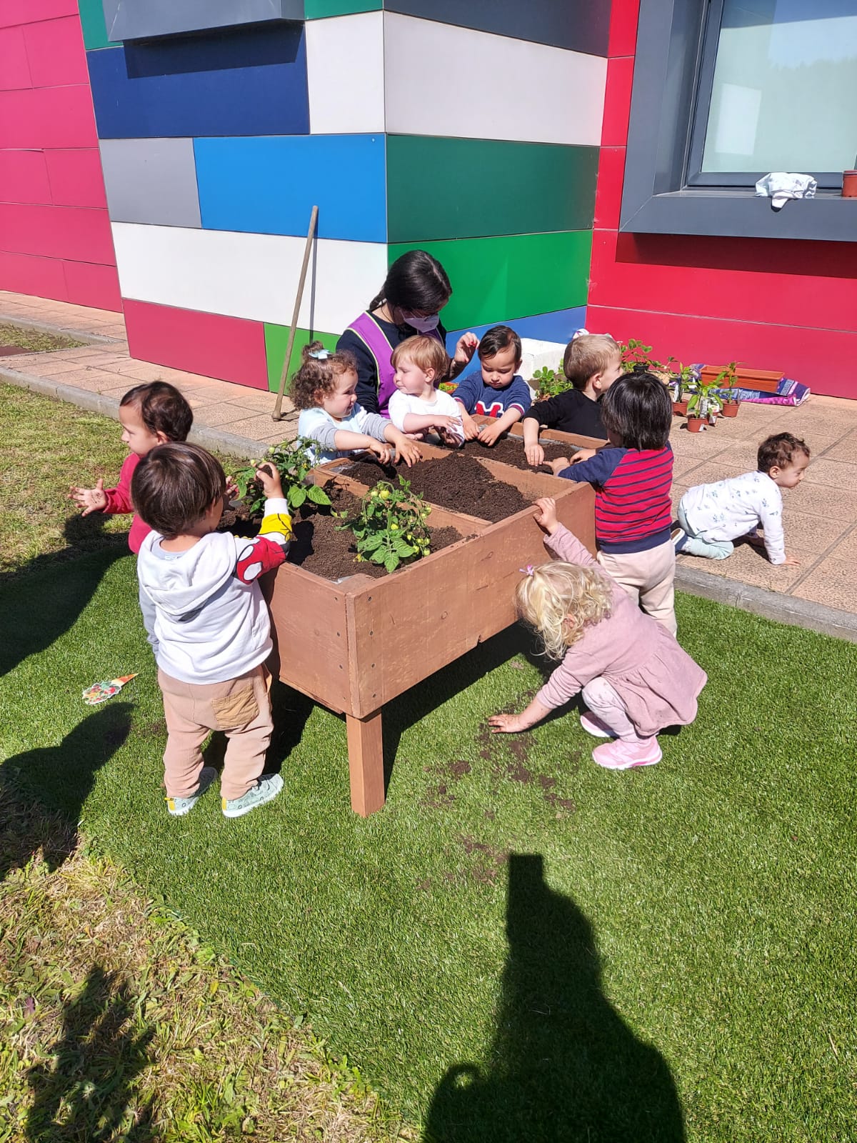 Con la llegada de la primavera y aprovechando nuestro amplio entorno exterior, hemos hecho nuestro pequeño huerto. En el trabajaremos el cuidado de las plantas y observaremos su evolución a lo largo del tiempo. Os dejamos unas cuantas fotos para que veáis a nuestros pequeños agricultores.