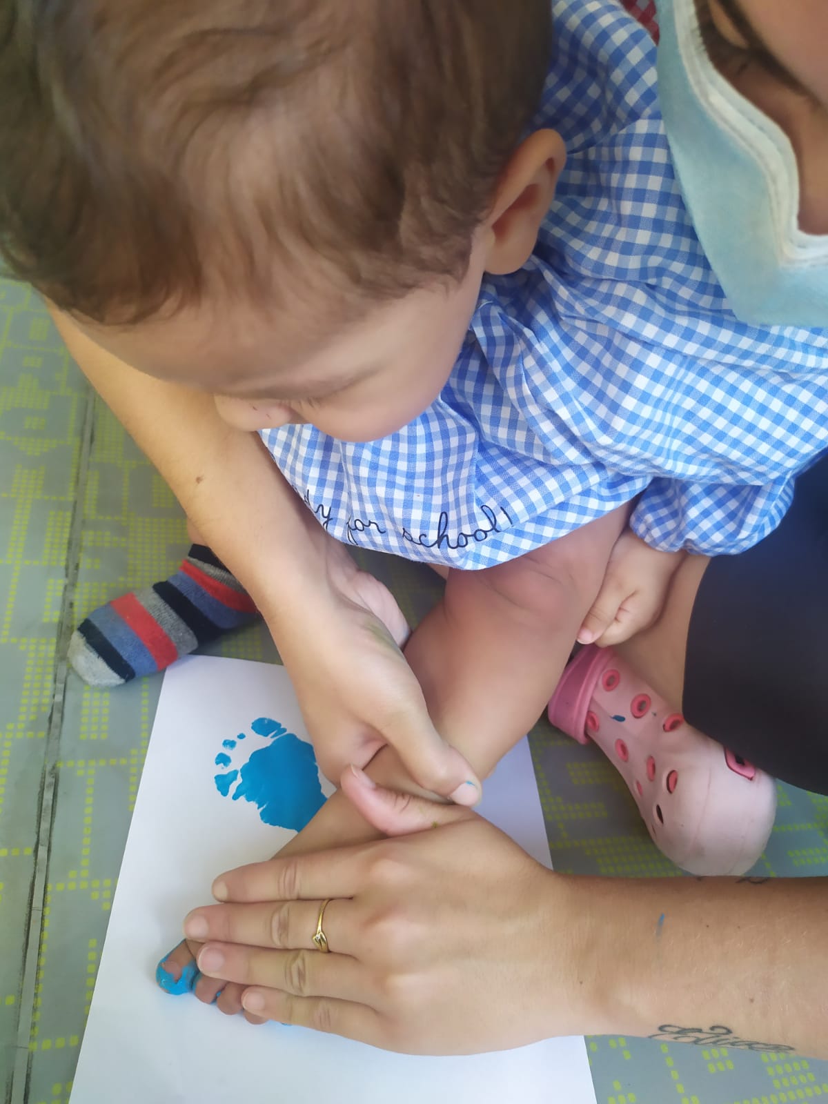 Esta semana publicamos las fotos de una actividad plástica muy divertida que hemos llevado a cabo en nuestros centro donde nuestra herramienta principal han sido nuestros pies.