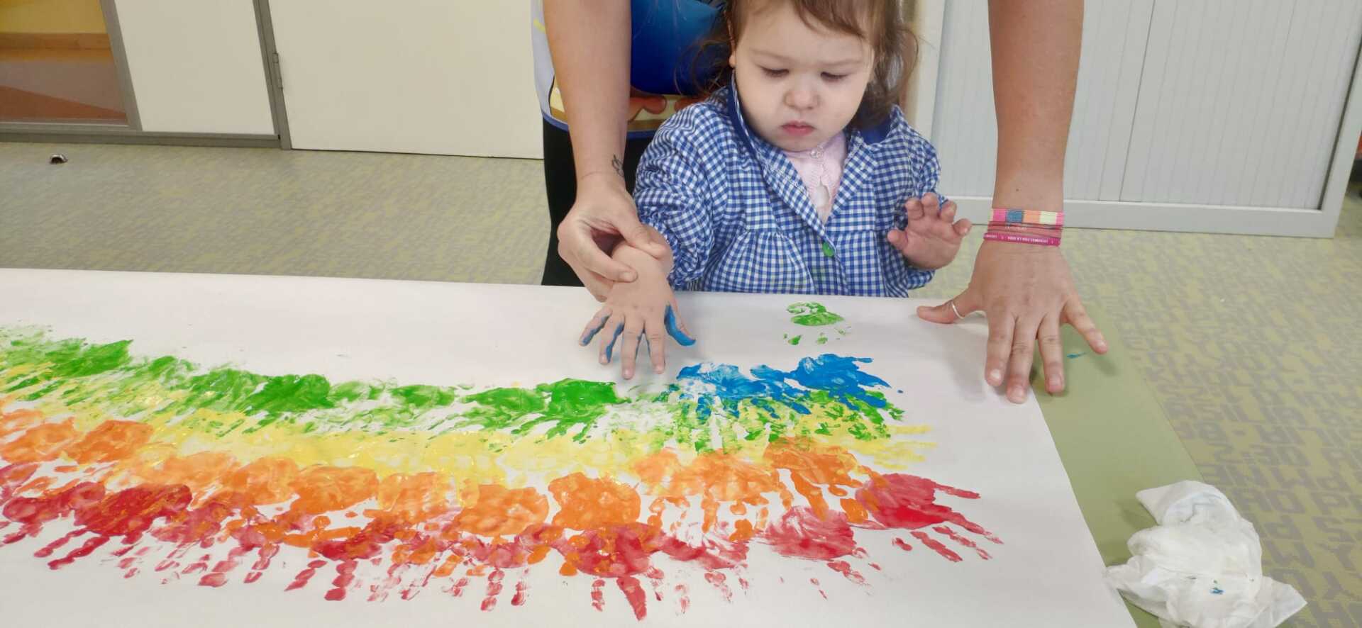 Hola amig@s, esta semana os mostramos el arco iris tan bonito que hicieron los "peques" con sus manitas.