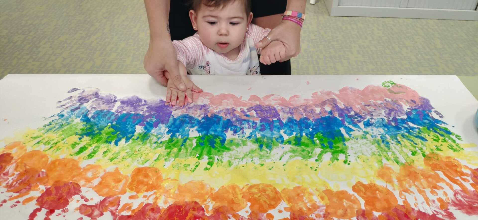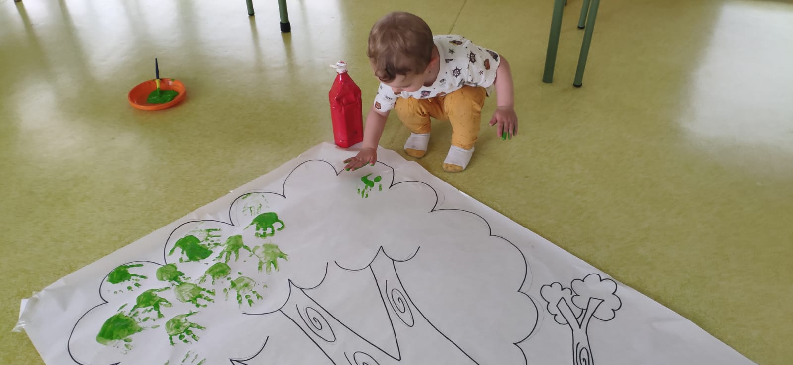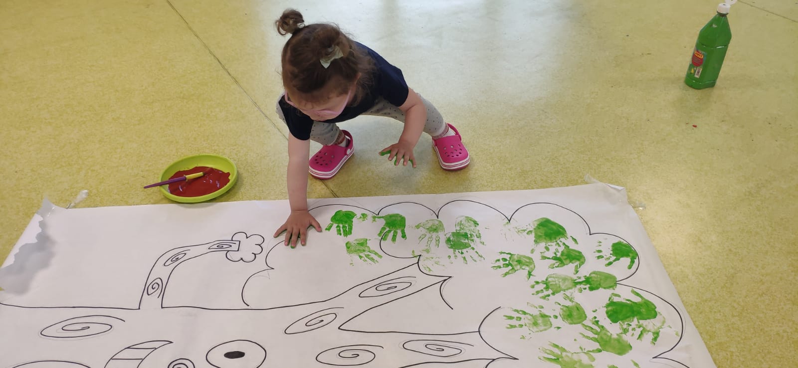 Como bien se merecen, lo hemos celebrado con ell@s mediante un mural realizado con las manos de tod@s los peques.