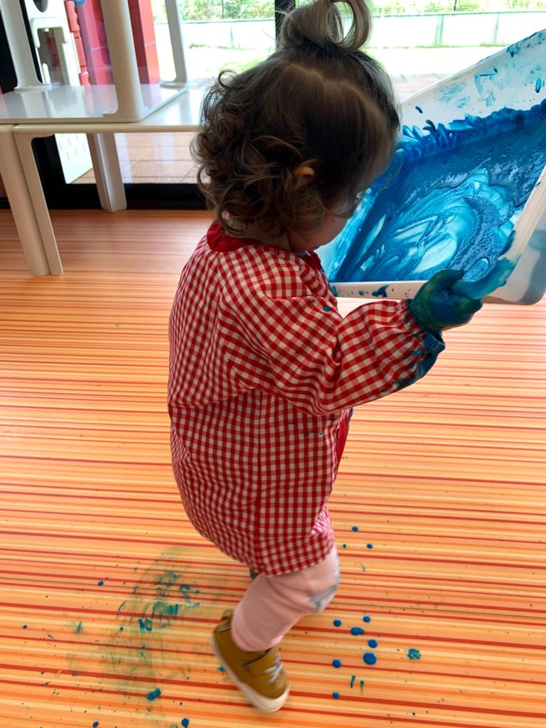 Esta semana hemos realizado un taller de gelatina, en el cual los niños tenían que pintar en el papel continúo, cada uno ha reaccionado de manera diferente, pudiendo observar diferentes acciones en ellos, dependiendo de la edad de cada uno. Dando especial importancia a la experimentación y descubrimientos en estas edades.