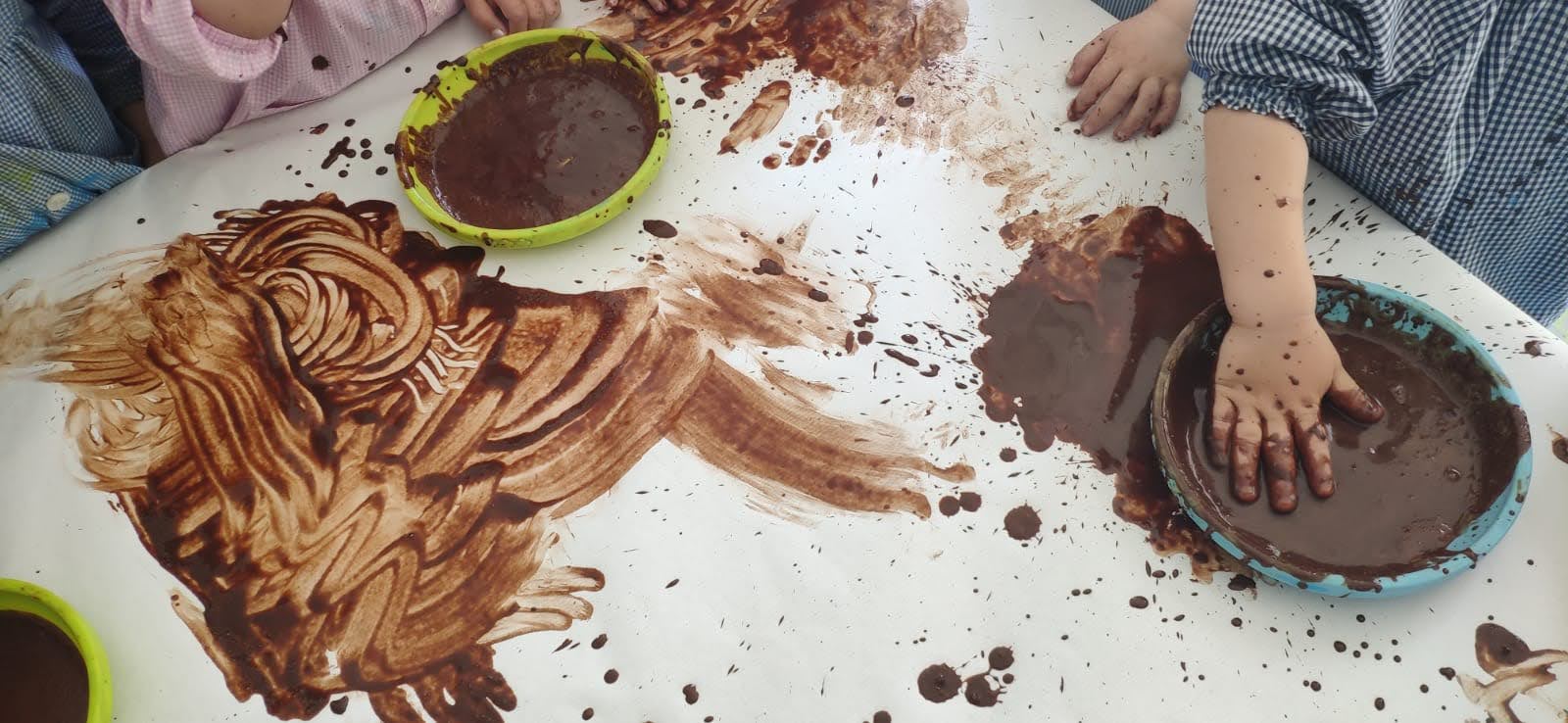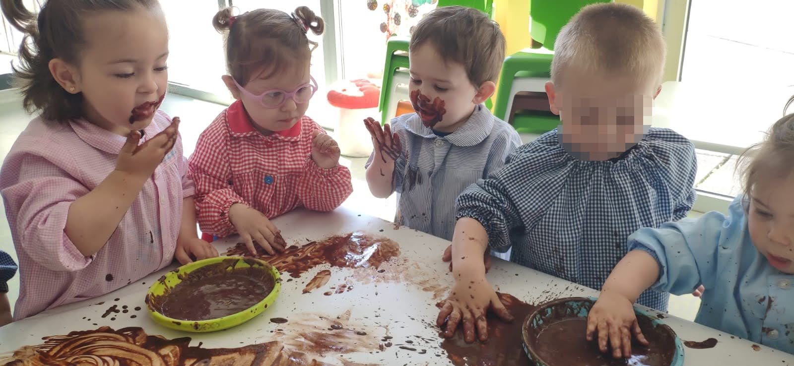 Os queremos enseñar algunas fotos de las actividades que hemos llevado a cabo en nuestro centro de Renedo. Como actividad principal, hemos pintado de manera libre con chocolate. A través de este taller, conseguimos que los niños desarrollen sus sentidos al tocar, saborear y oler el chocolate. A la hora del patio, hemos recogido hierba del jardín y lo hemos metido en nuestra compostera, trabajando así nuestro proyecto de Ecoescuelas.
