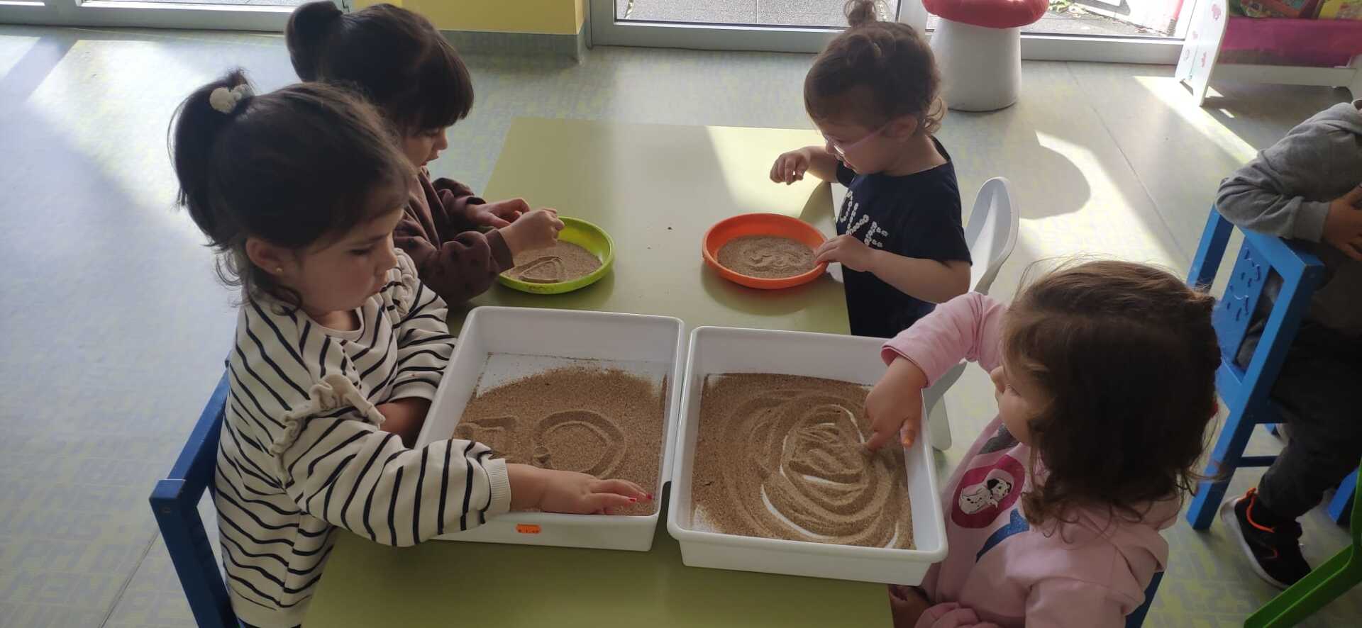 Esta semana destacamos dos actividades que hemos realizado en la Jilguera donde desarrollamos la motricidad fina y gruesa con actividades de precisión y movimiento. Por un lado hemos dibujado sobre bandejas de arena, realizando trazos con los dedos, y por otro lado hemos jugado con el paracaídas realizando juegos motores.